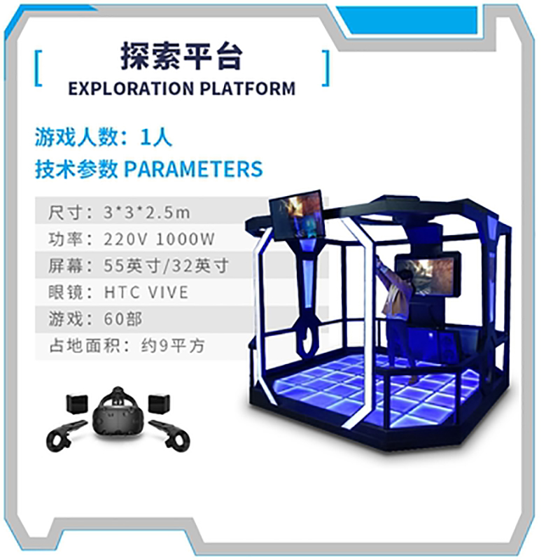VR神秘探索是在虚拟的世界自由行走射击,选配COSMOS360°全景头盔及操纵手柄,视觉效果逼真,手势控制流畅;清晰细腻的画面,实时互动的游戏,智能灵敏的操作手柄,体验感丰富,设有关卡,互动性强,激发体验者的战斗欲望。
